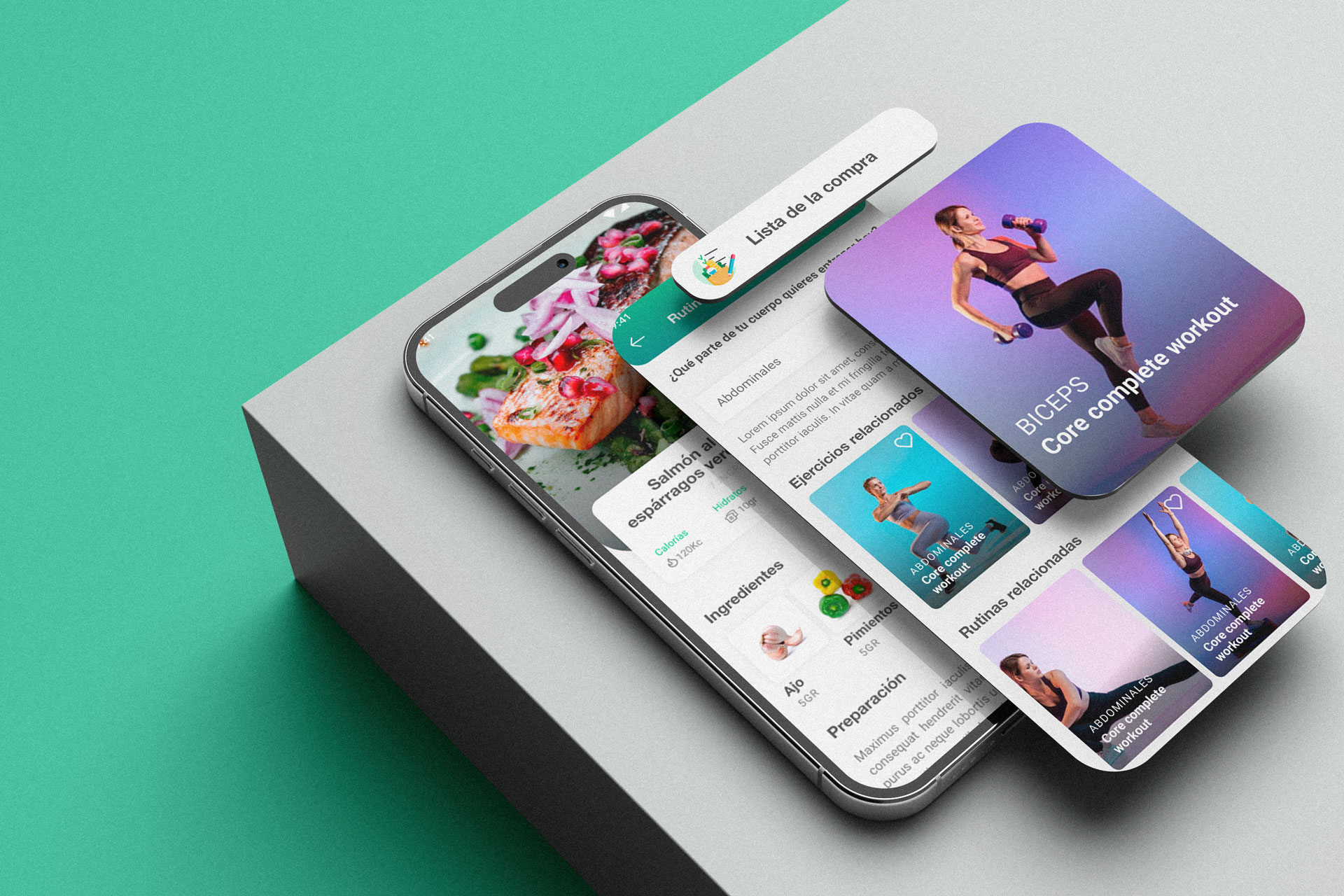 Behind Crislofit is Cristina Lozano, a young and friendly professional sports nutritionist with over 238k followers on Instagram. In addition to working on the brand's branding, we developed a comprehensive app where users could follow a personalized, structured, and guided diet, with many recipes at their fingertips and exercises tailored to their needs.