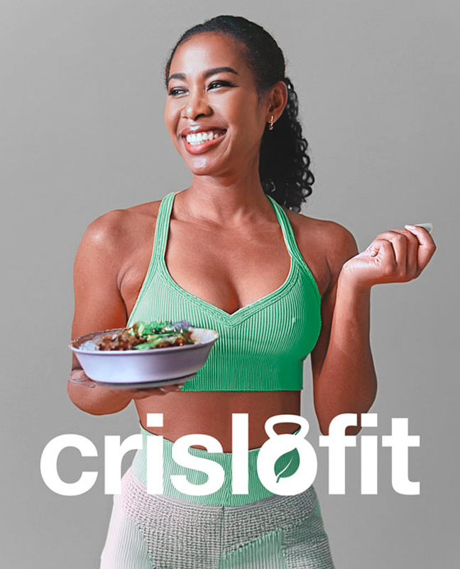 Crislofit is a brand dedicated to promoting healthy living through fitness and balanced nutrition. Its name blends Cristina, the founder, with fitness. The logo features a kettlebell with a leaf, symbolizing strength and health. Green tones convey vitality, while the gradient reflects clients’ personal growth and transformation toward their goals.